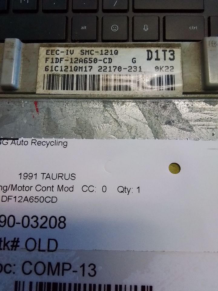 1991 FORD TAURUS Part:590 Stock:OLD Engine Control Module F1DF12A650CD 91 Electronic Control Module; 6-183 (3.0L) Exc. SHO; Federal Emissions R00000046