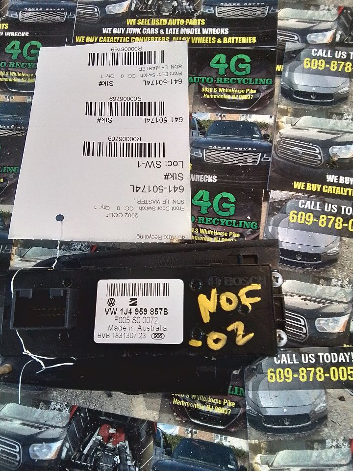 2002 VOLKSWAGEN GOLF Part:641 Stock: Front Door Switch SDN. LF MASTER , GTI 06 Driver’s; VIN J (8th Digit) Window 4 Dr R00006769