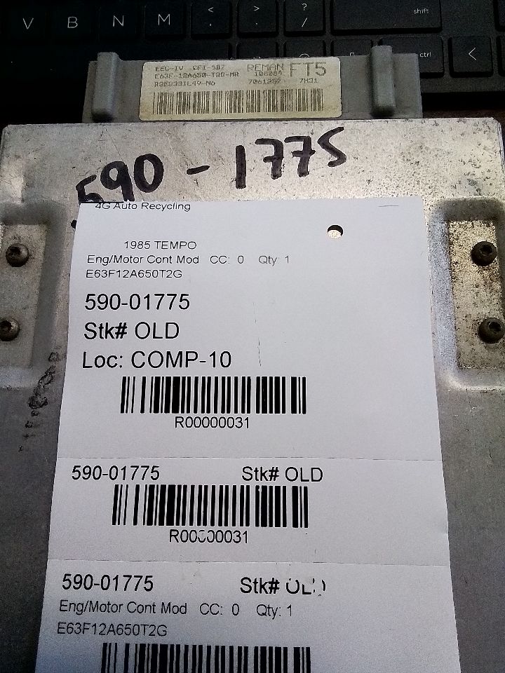 FORD TEMPO 1985 1986 Electronic Control Module AT, Federal Part:590 Stock:OLD Engine Control Module E63F12A650T2G