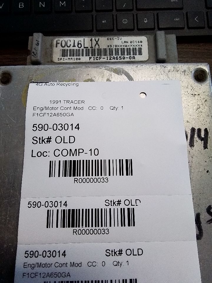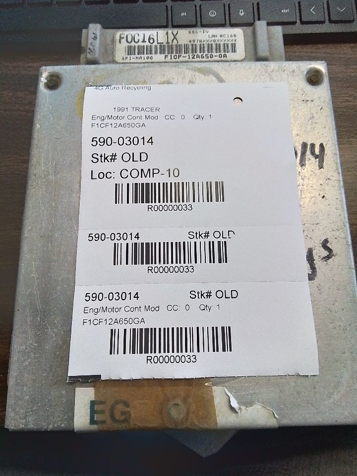 MERCURY TRACER 91 Electronic Control Module 4-116 (1.9L, SOHC), AT, Federal, ID F1CF-GA Part:590 Stock:OLD Engine Control Module F1CF12A650GA